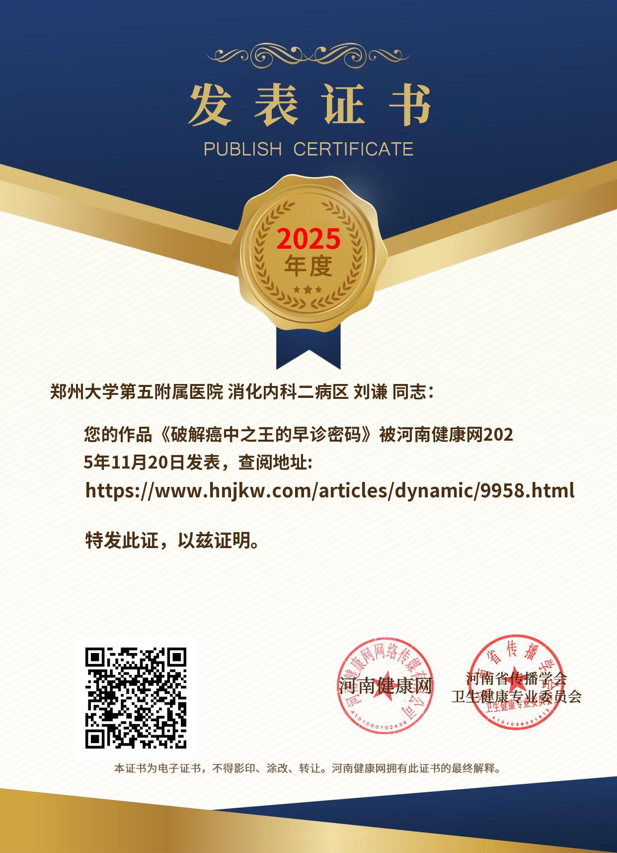 发表证书